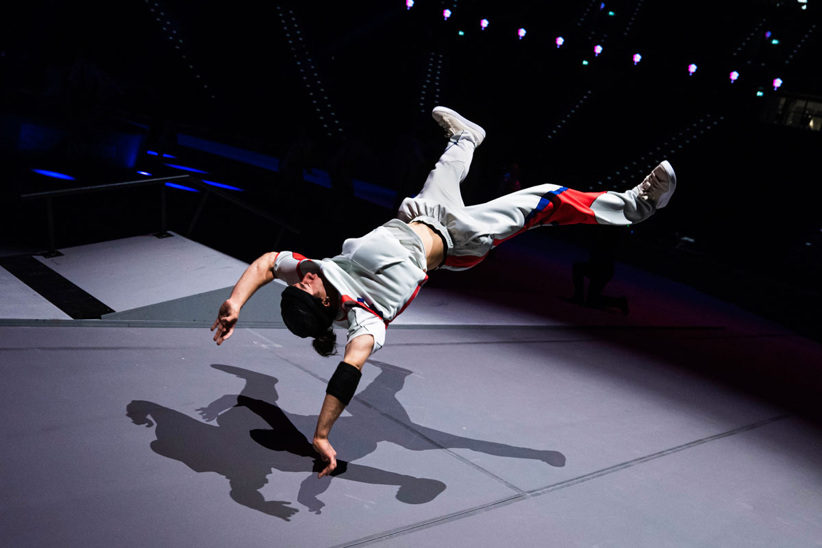 Eine weitere Schlüsselfigur war B-Boy Snoop, Mitglied der Flying Steps, der aus einer Nachbarstadt stammt. Wenn er in der Heimat war, trainierten alle zusammen – in einem Raum, der wegen seiner Bedeutung für die Crew „Tempel“ genannt wurde. Ruhig, konzentriert, fokussiert. Dort wurden Moves verfeinert und perfektioniert, für die Amin heute unter anderem bekannt ist: Headspin, Elbow Airflare, Airflare. „Snoop hat mich inspiriert, meine Technik geschliffen. Das hat mich auf ein neues Level gebracht.“